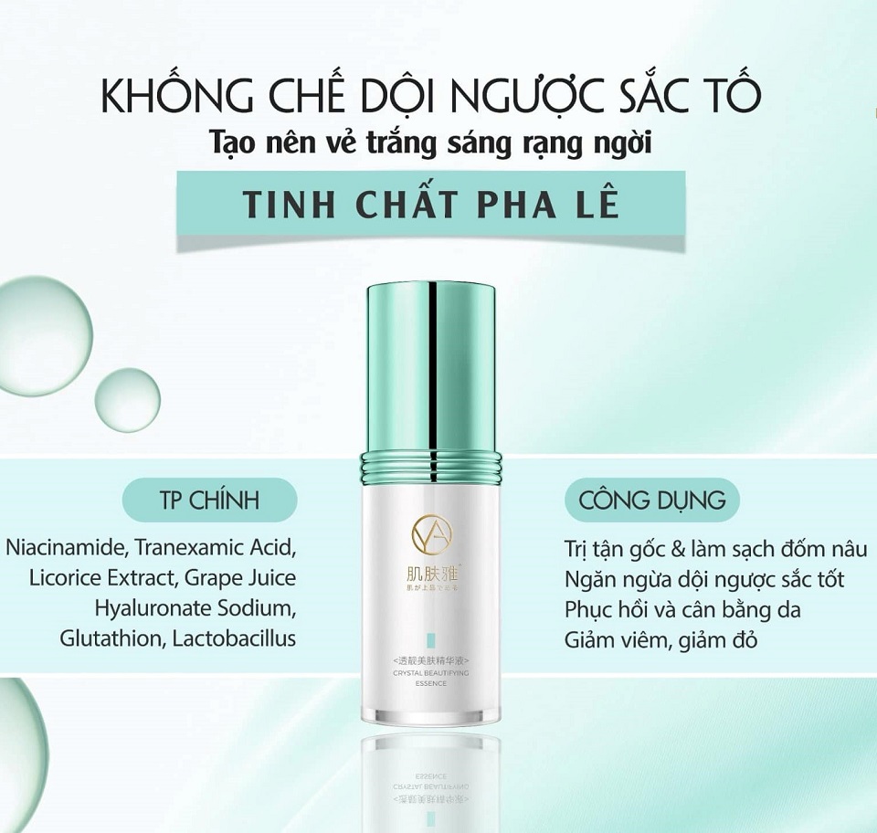 Cải thiện tone màu da, làm trắng sáng da , bật tông và đồng đều màu da. Tinh chất pha lê là dòng sản phẩm dưỡng trắng sáng da sử dụng hoàn toàn thành phần được chiết xuất tự nhiên tinh khiết nhất. Nhằm đảm bảo sự an toàn cho mọi làn da trong quá trình sử dụng.