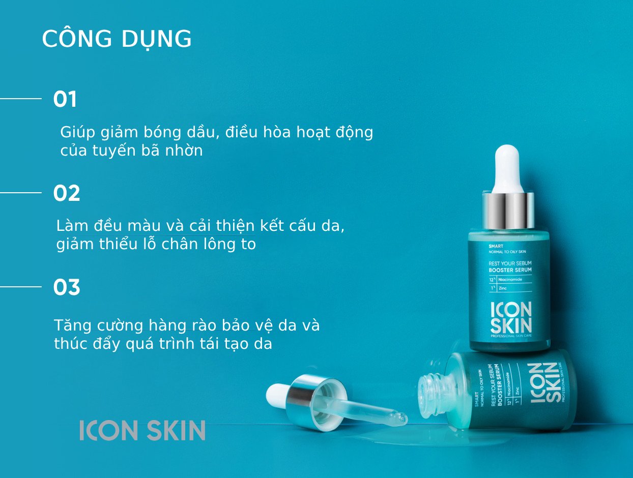 ICON SKIN REST YOUR SEBUM BOOSTER SERUM Serum Icon Skin Cân Bằng Da Dầu Nhờn - Chai 30ml - Xuất xứ: Nga - Mã vạch: 3713760812574 Giá Niêm Yết: 920.000 đồng/Chai